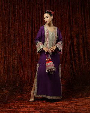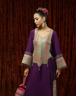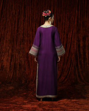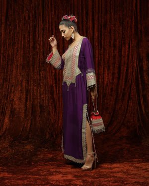 Featuring a Purple, Rani Pink & Oliv Green Kurta kaftan in Silk Chanderi and with fine gota, dori, badla work.
