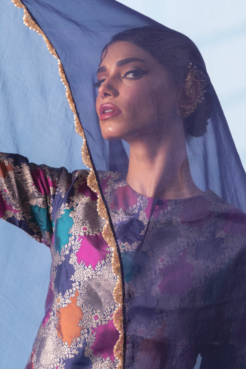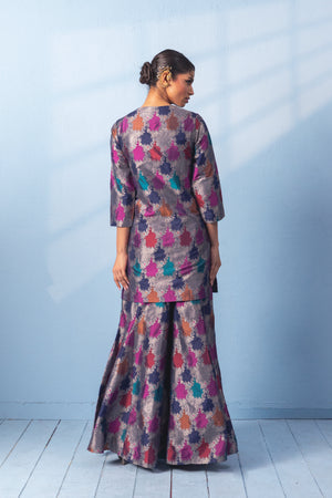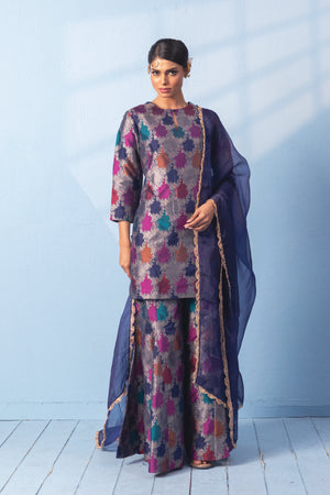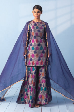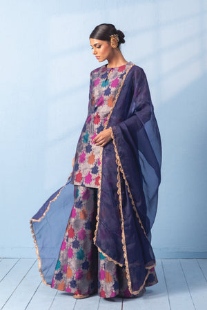 Rangkaat Banarsi Silk Kurta Sharara Set With Organza Duppata