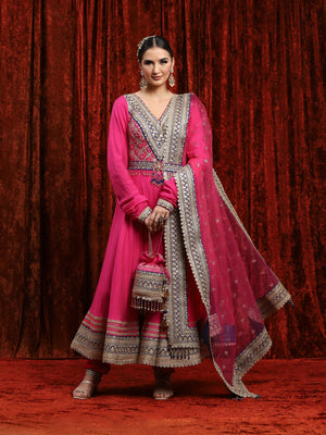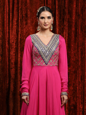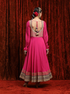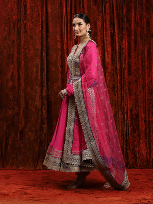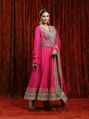 Rani Pink & Electric Blue Silk Chanderi Anarkali Suit