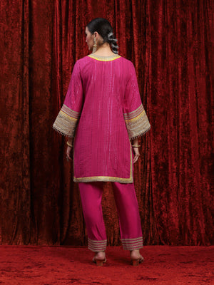 Rani Pink & Lemon Yellow Kurta Pant Dupatta Set