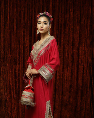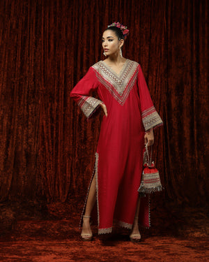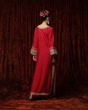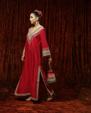 Featuring a Rani Pink & Maroon Kurta kaftan in Silk Chanderi and with fine gota, dori, badla work.