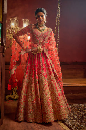 Rani Pink Raw Silk Hand & Machine Embroidered Lehenga Set