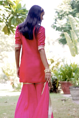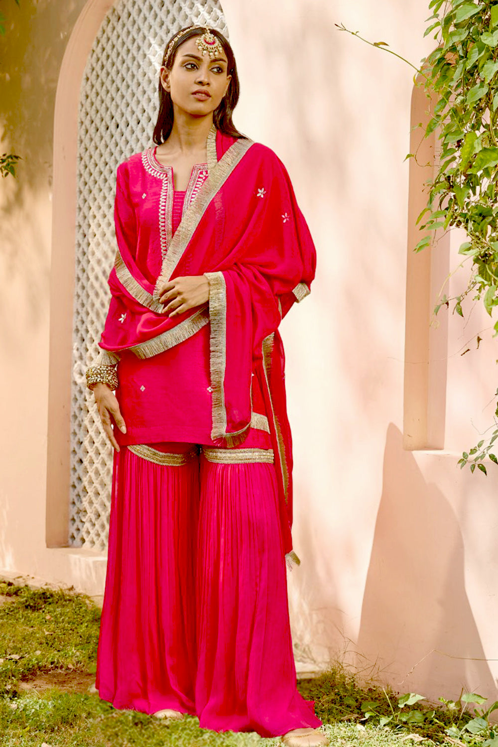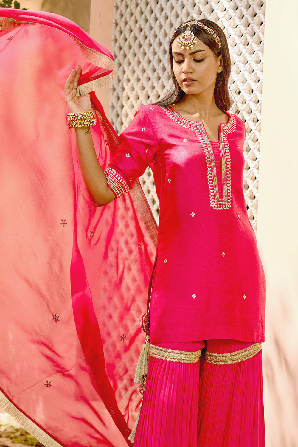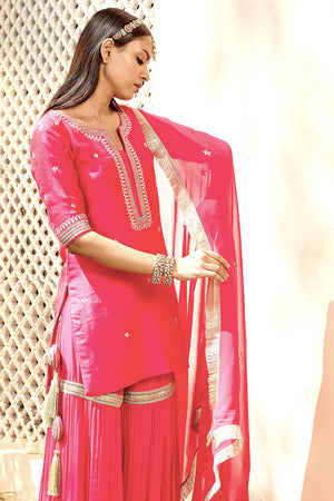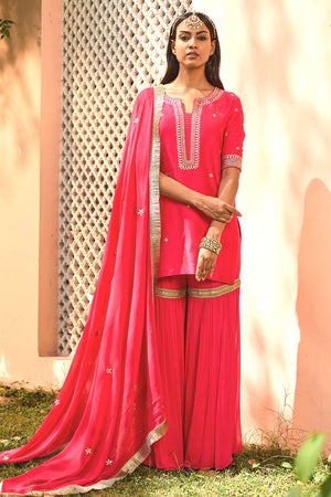 Rani Pink Silk Georgette Embroidered Sharara Set