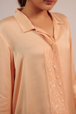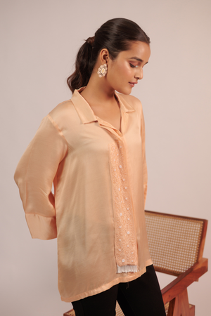 A refined front button-down shirt finished with a structured collar and sharp cuffs.