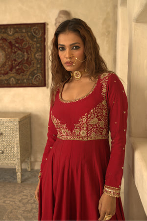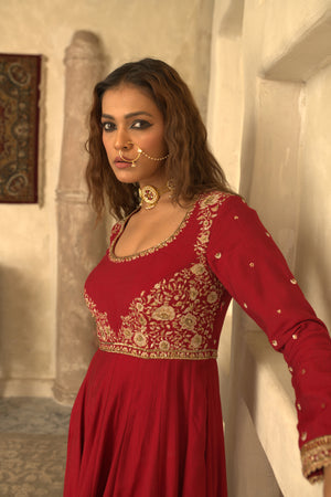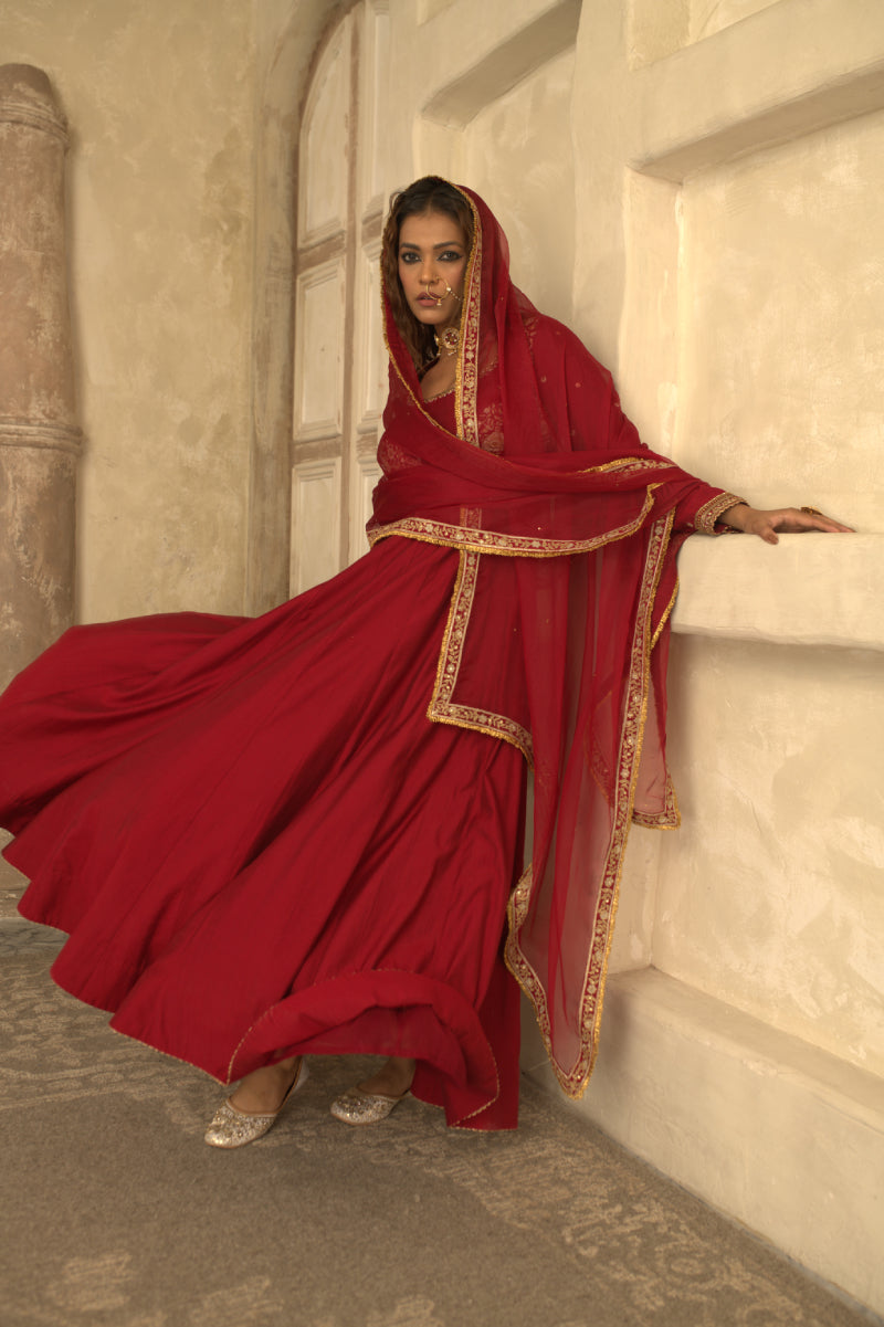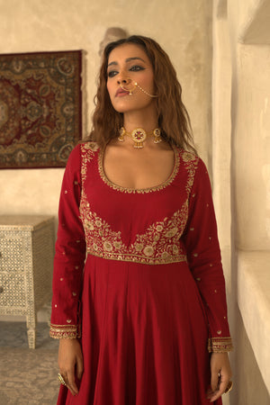 RED CHAND ANARKALI SET