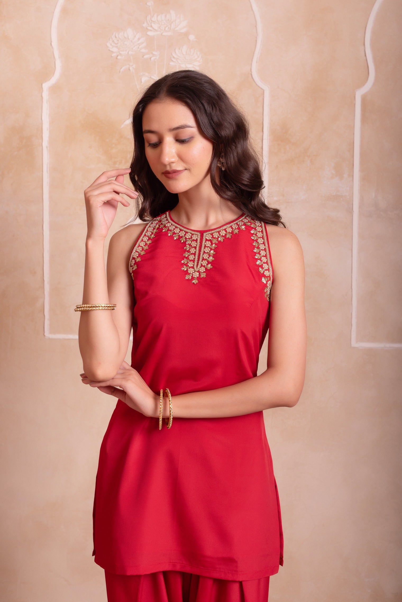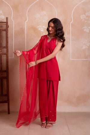 Red Farshi Kurta Salwar Handwork Dupattta Set