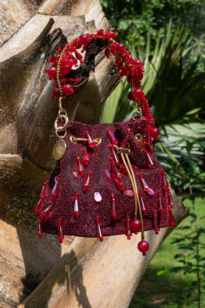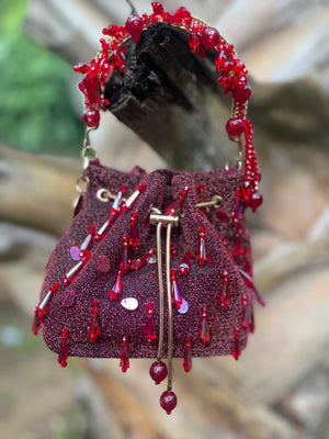 Inspired by traditional bags, Artisans in India and shaped to a lightweight structured form crystals Potli bags