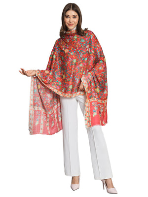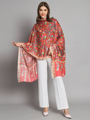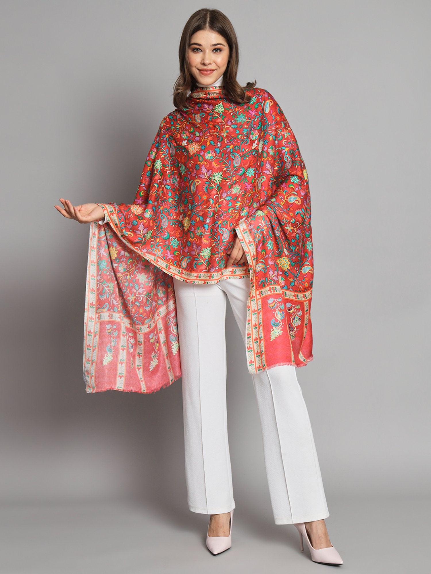 Red Shawl With Beautiful Jamavar Print And Outlined Embroidery