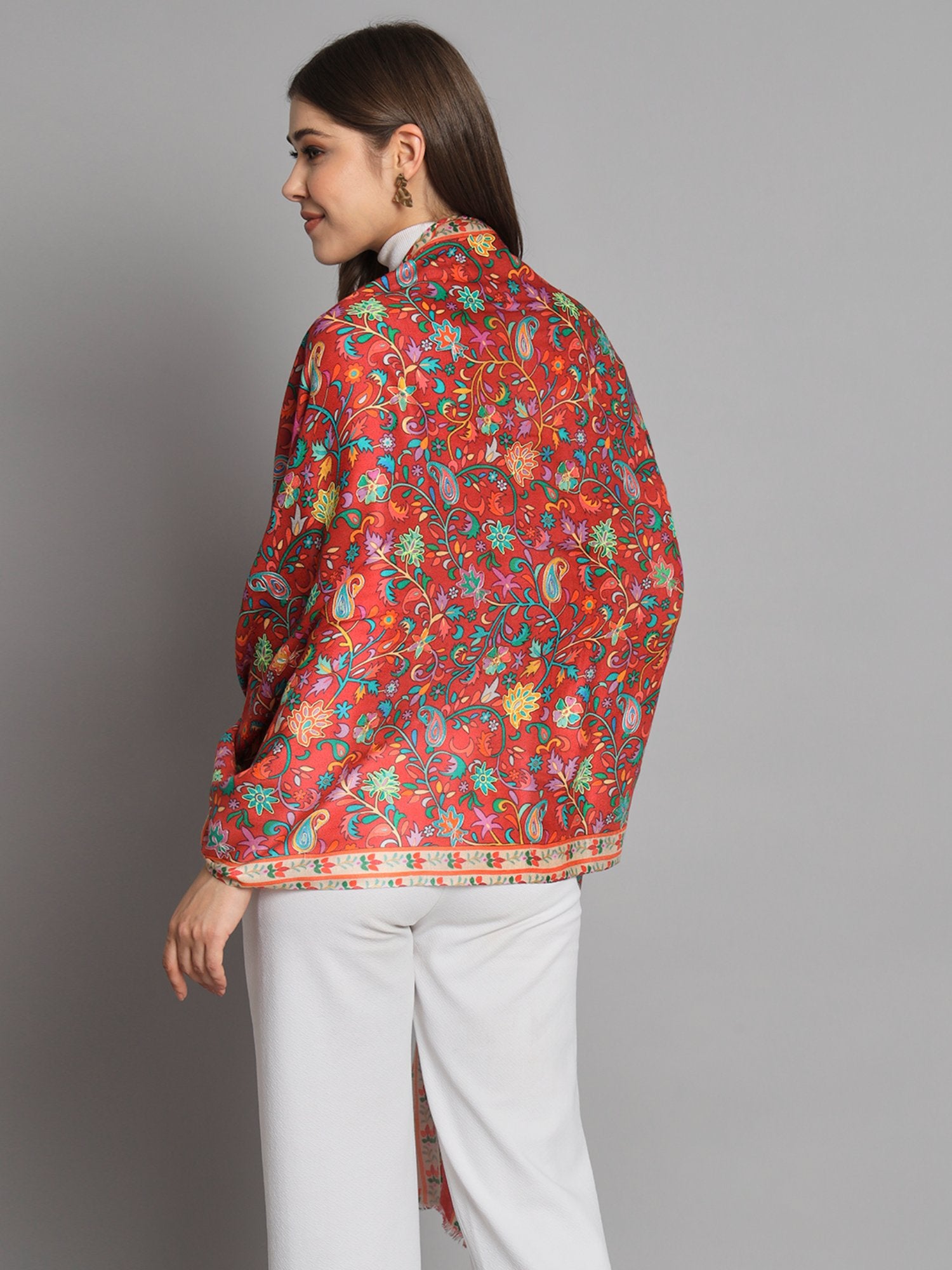 Adorn yourself in the captivating allure of our Red Shawl, adorned with a beautiful Jamavar print and delicately outlined embroidery. This exquisite piece effortlessly combines traditional artistry with modern elegance, creating a striking accessory for any occasion. The rich red hue exudes passion and grace, while the intricate detailing adds a touch of sophistication. Wrap yourself in luxury and make a statement with this enchanting shawl.