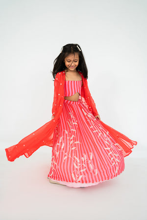 RED STRIPES LEHENGA SET