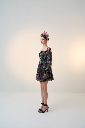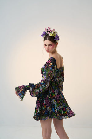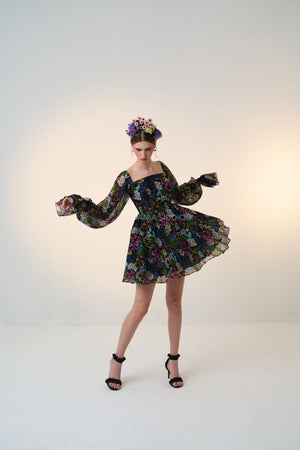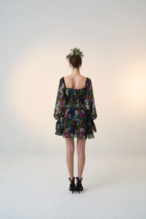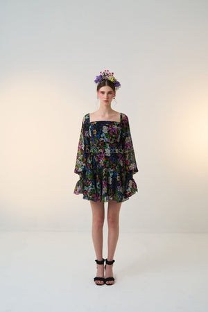 square neckline, smocking back & cuff detail, frill bishop sleeve, cotton lining back zip & hook for closure.
