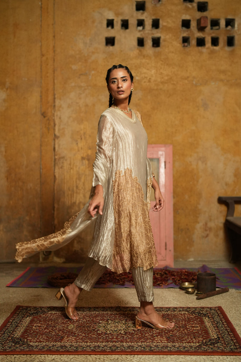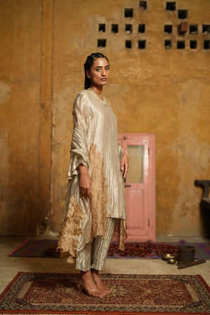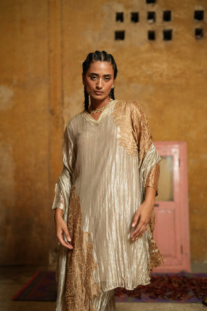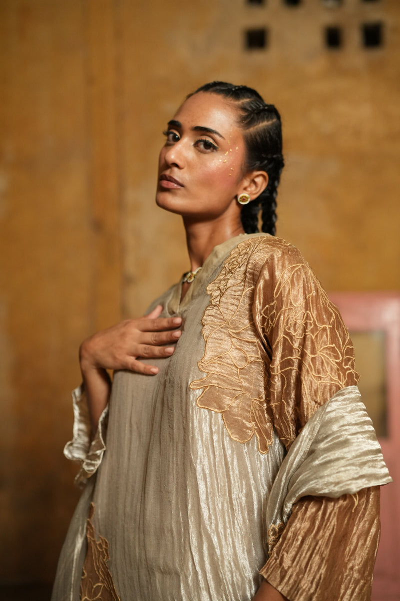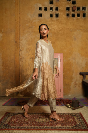 Each garment in this collection is a masterpiece, showcasing the rich heritage of Banaras Tissue Fabric through intricate weaves and luxurious textures collection features a range of silhouettes, from elegant contemporary sarees adorned with delicate coral motifs to exquisite Kaftaans embellished with intricate zari work. Each piece in the collection is designed to make a statement while ensuring comfort and ease of movement, allowing you to celebrate in style without compromising on comfort. Whether you choose to adorn yourself in a resplendent saree or opt for a contemporary fusion, this collection offers versatility and elegance for every occasion.