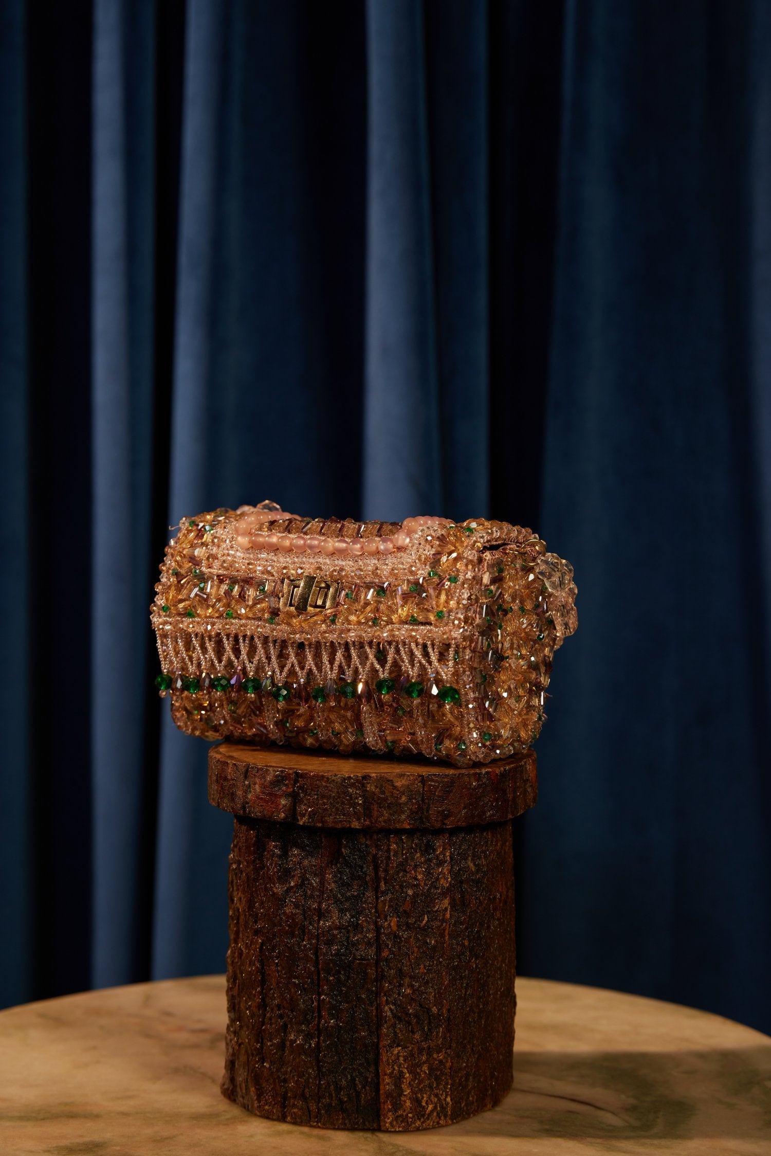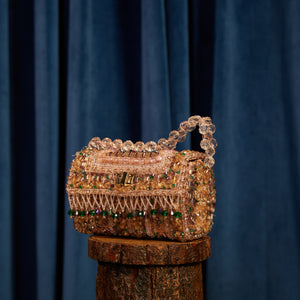 Emerald rosegold bag is made from supple crystals to a sculpted silhouette that echoes the label's meticulous craftsmanship.