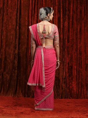 Rouge Pink Georgette Saree Saree & Blouse Set