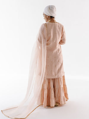 Beige Hand Embroidered Kurta Set with Silk Organza Dupatta