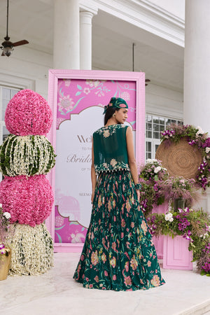 Embellished Choli Paired With An Embellished Jacket And Printed Skirt With Lehenga