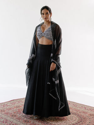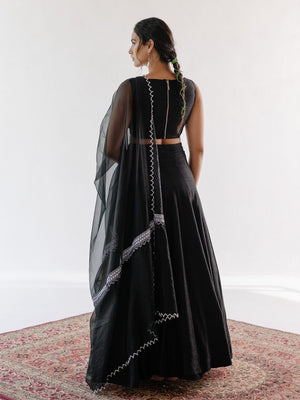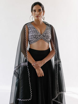Black Resham Embroidered Lehenga Set with Silk Organza Dupatta
