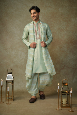 Sage Green Embroiderd Kurta With Dupatta And Dhoti