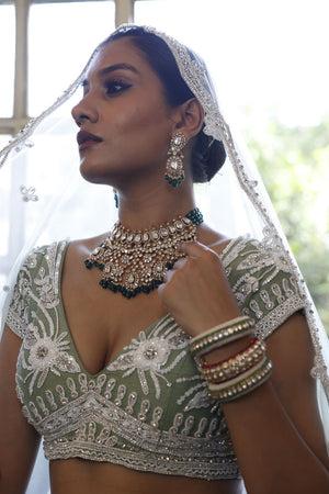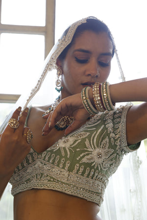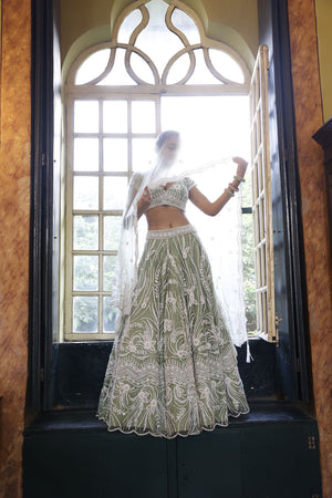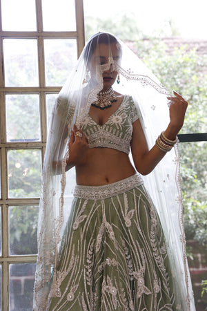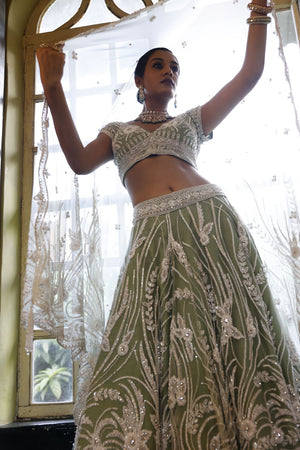 Sage Lehenga, Choli and Dupatta