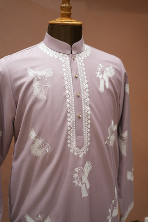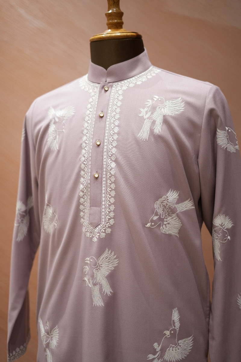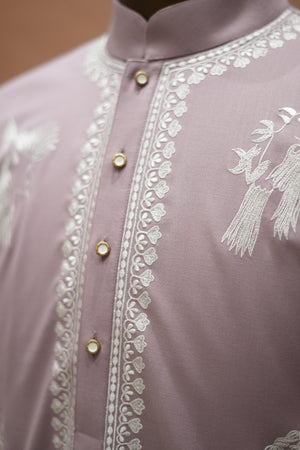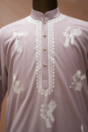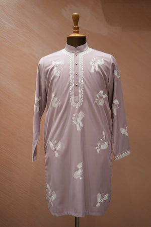 Featuring a pink colour kurta with white design. It is paired with white pants. Perfect attire for any festive occasion exuding traditional charm and timeless elegance.