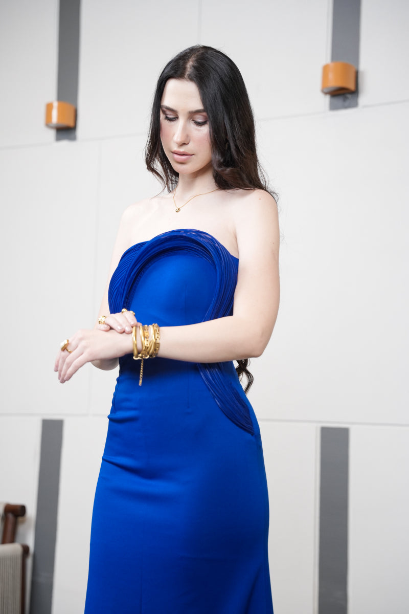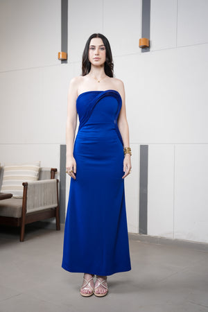 This rich blue sculpted dress combines luxury and comfort with its little stretchable fabric, allowing for a perfect fit while maintaining its elegant silhouette. The rich blue color enhances its opulence, while the sculpted design adds a modern twist. Ideal for any special occasion, this dress ensures you look and feel fabulous, effortlessly blending style with ease of movement.