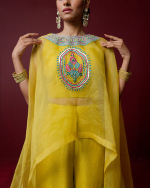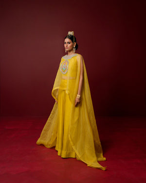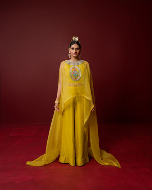 Savitri Co-ord set delivers the color tones of happiness and gorgeous handcrafted embellishments illustrates light and joy.