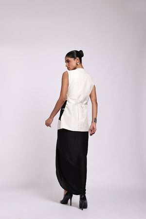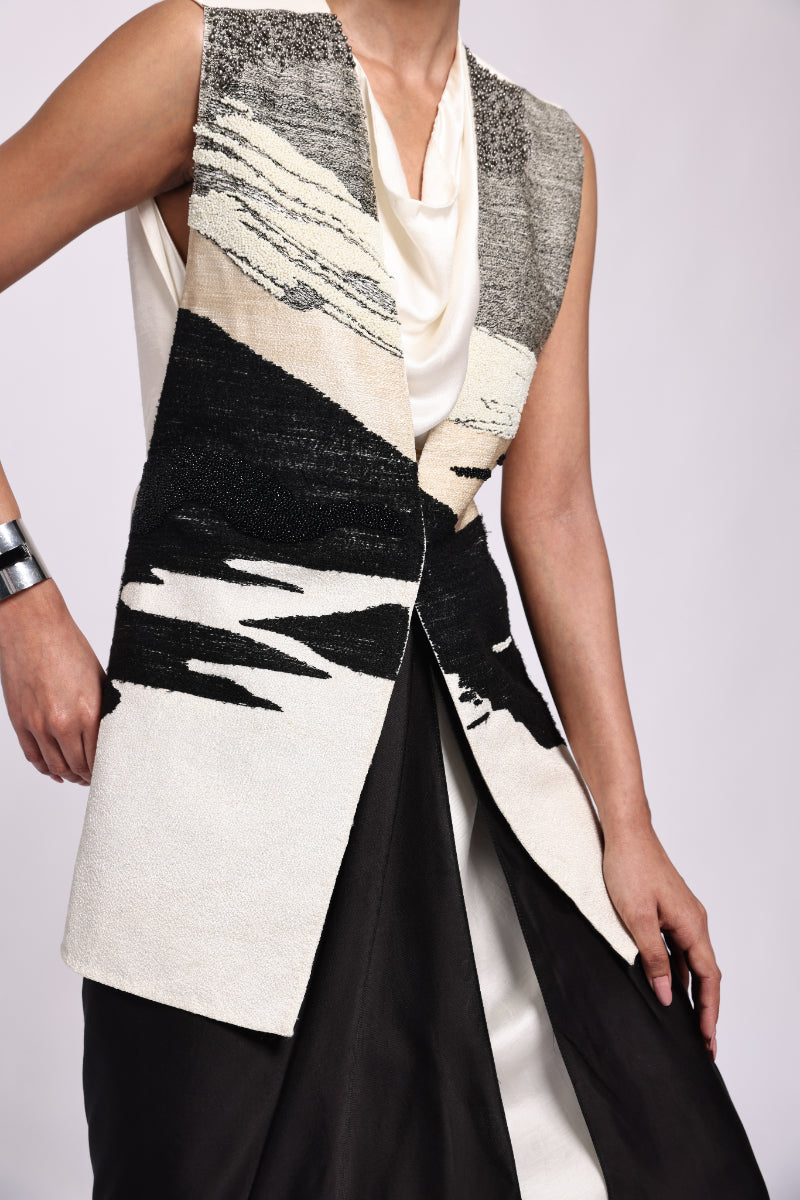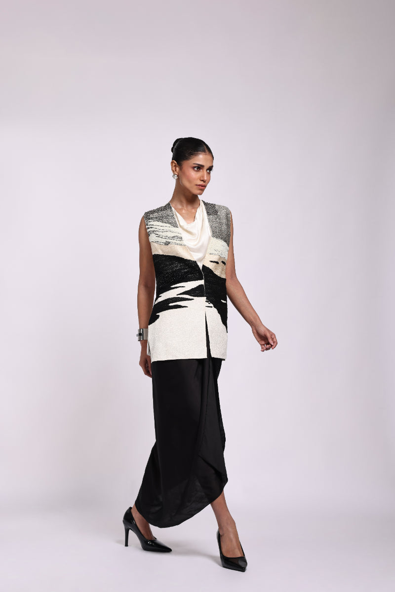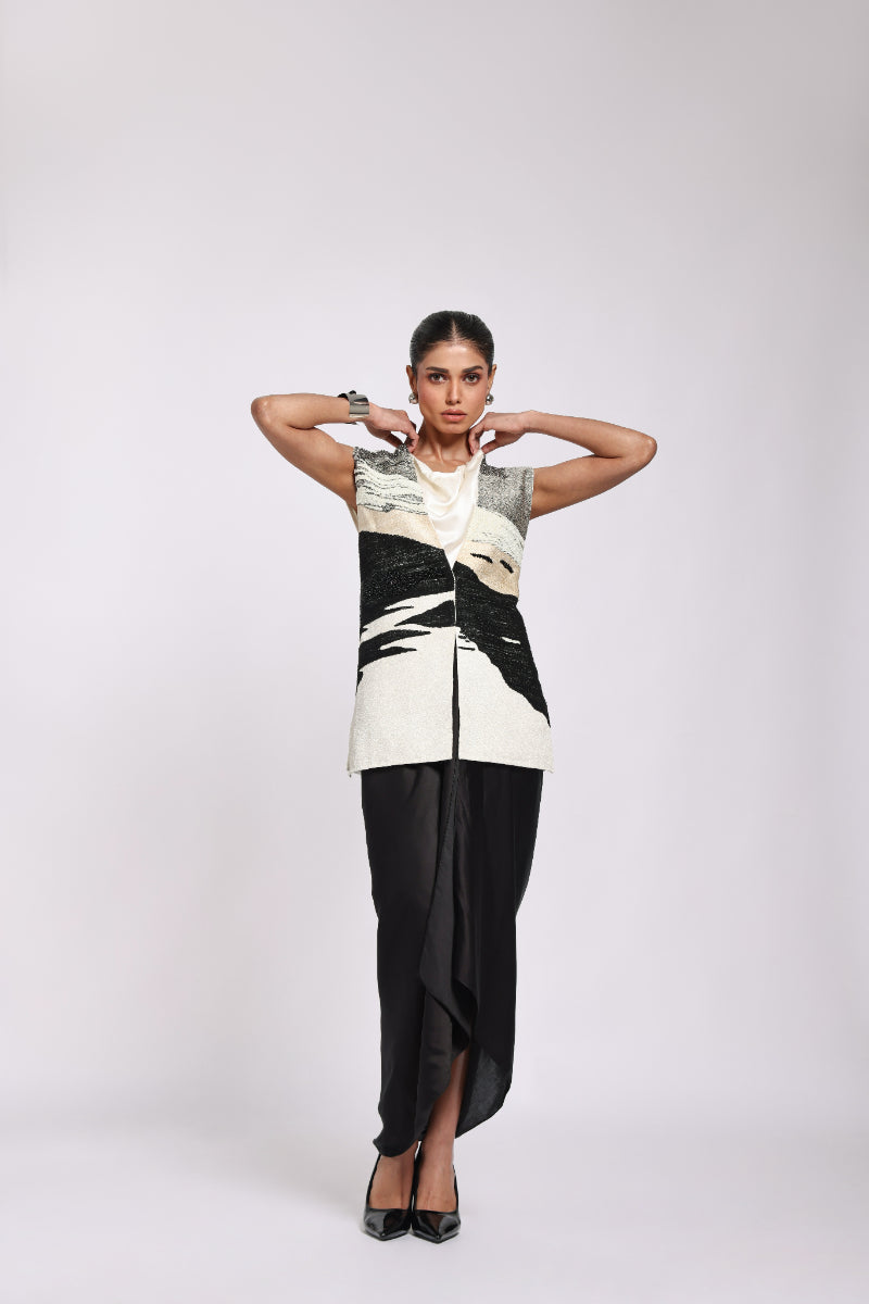 Embroidery Jacket With Cowl Sarong Dress