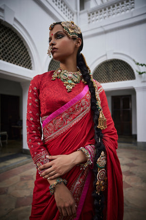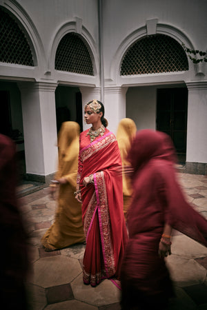 STYLE TIP : Style this designer saree set with statement jewellery and elegant block heels for a complete ensemble, perfect for a wedding or an engagement ceremonies.