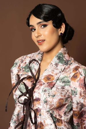 Picture yourself in a stunning co-ord set made of floral print silk linen fabric. The ruffles in the top and the balloon sleeves add a touch of elegance and style, making it a perfect choice for any fashionable event! Imagine stepping out in a stunning co-ord set that exudes elegance and style! this ensemble is a true showstopper, perfect for any fashion-forward occasion. Embrace the chic and sophisticated vibe of this outfit as you make a statement with your unique and fabulous style!