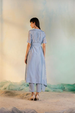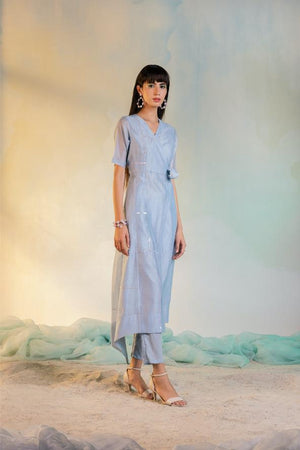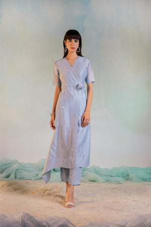 Sequin Wrap Kurta With Straight Pants - Set of 2