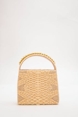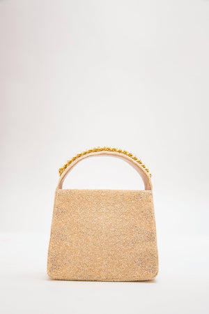 Equipped with a detachable chain strap, this accessory can be worn as a crossbody/shoulder bag or carried as a grab handbag.