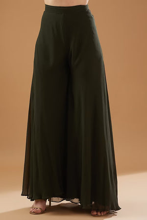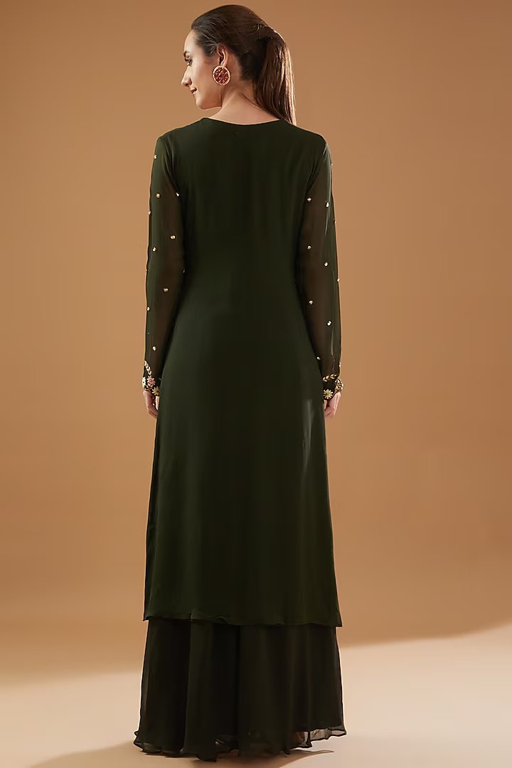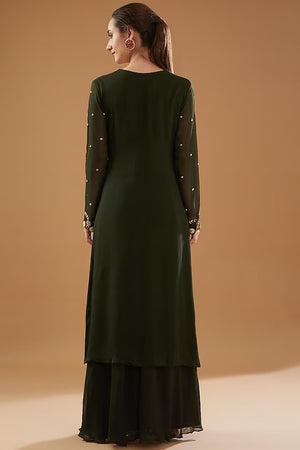Mehndi Green Heavy Embroidered Straight Suit with Sharara and Dupatta.