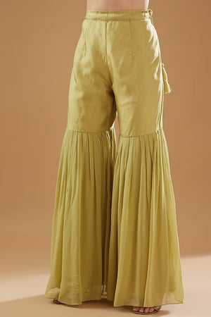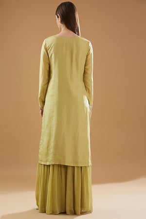 Green Embroidered Straight Suit with Sharara and Scallop Dupatta.