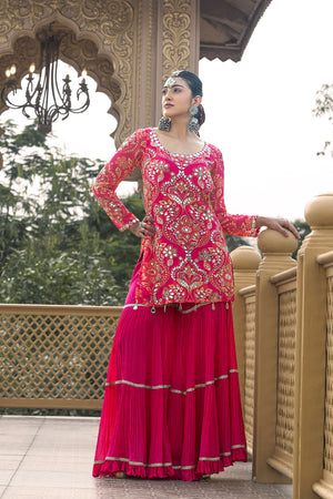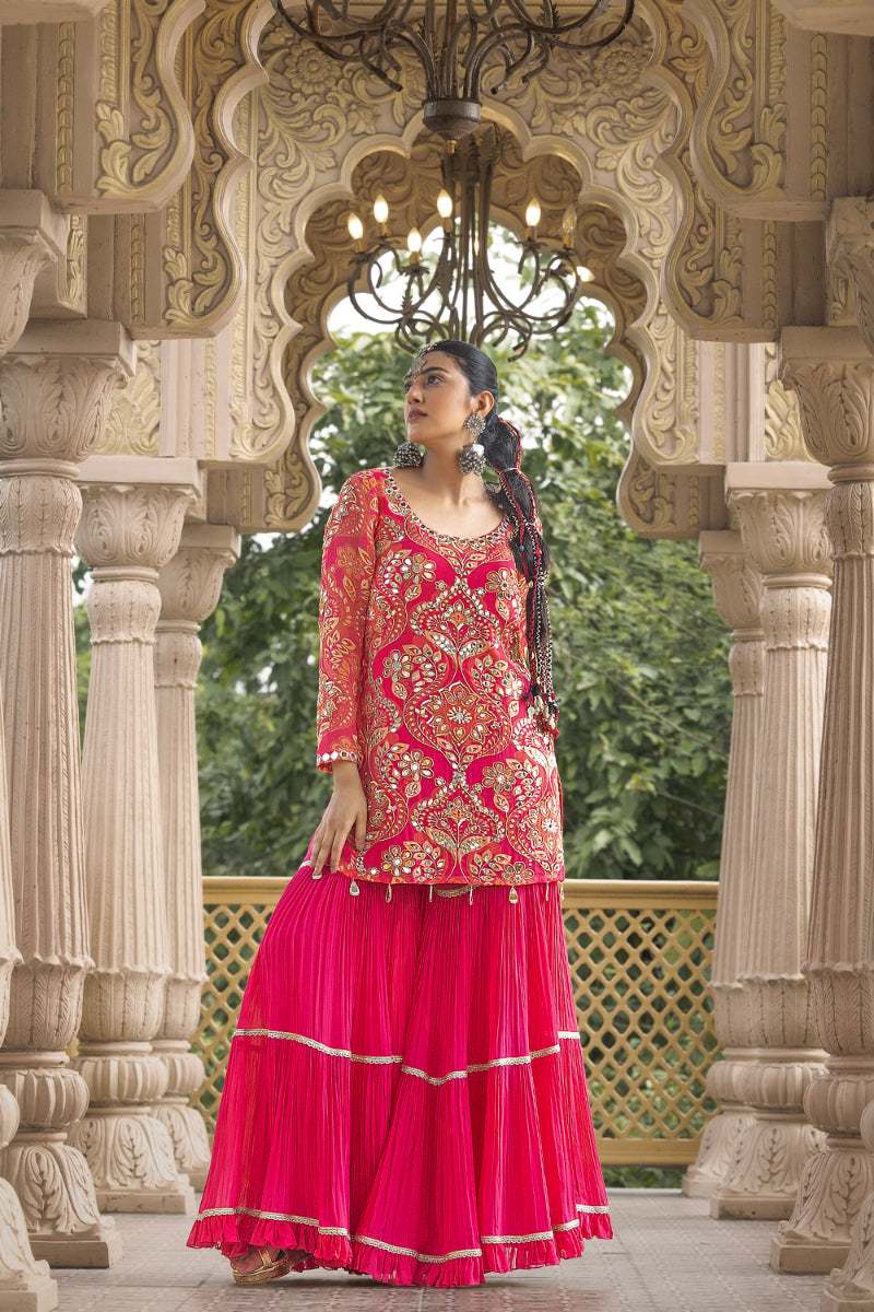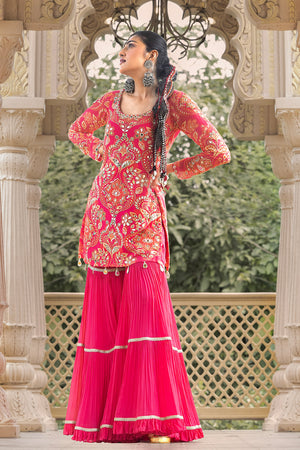 SHARARA + SHORT KURTA + DUPATTA - RUHANI PINK