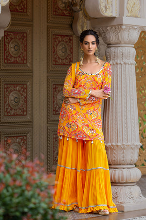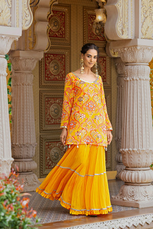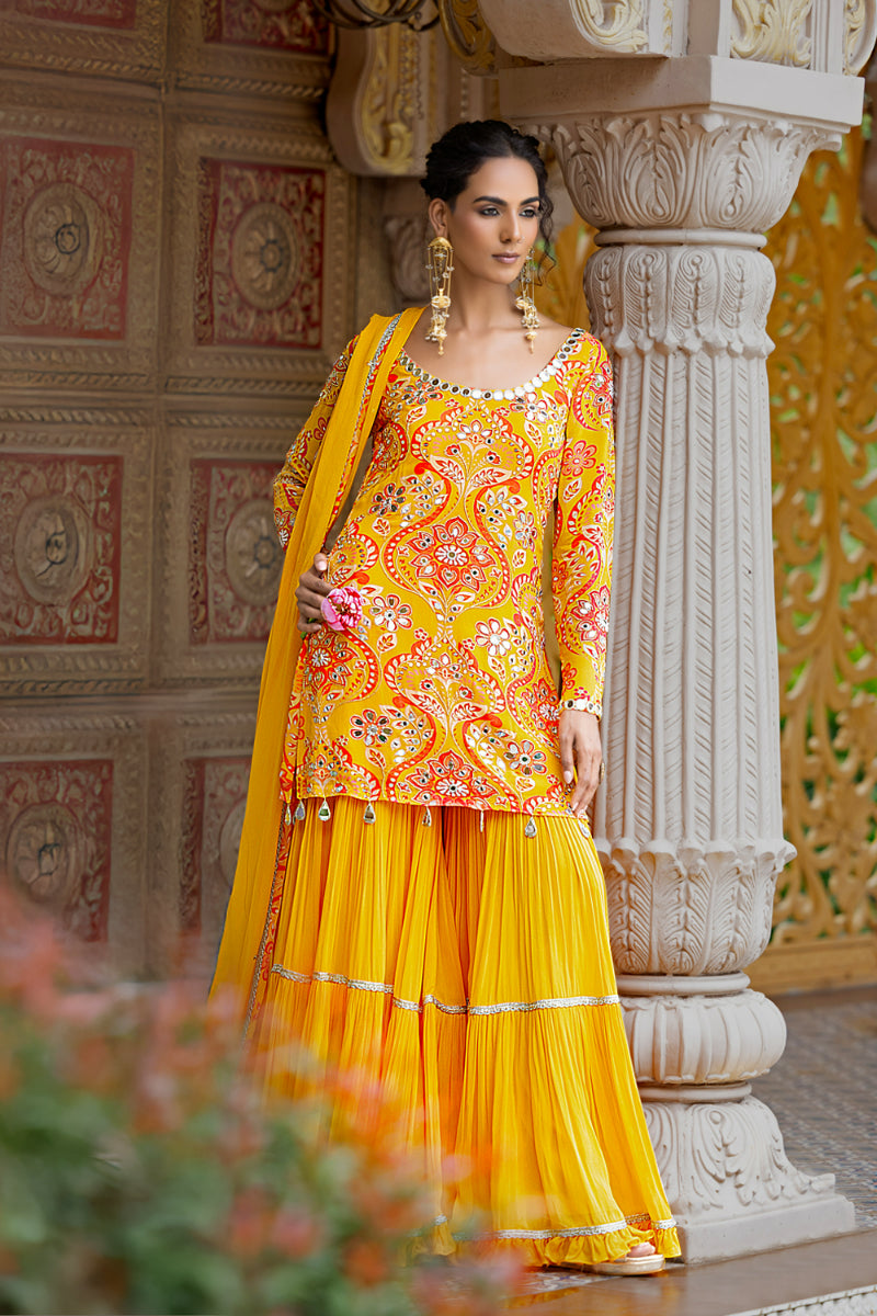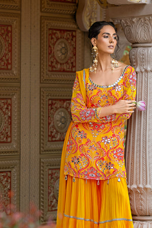 SHARARA + SHORT KURTA + DUPATTA - RUHANI YELLOW