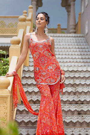 SHARARA + SHORT KURTA + DUPATTA - SITAARA ORANGE (STRAP)
