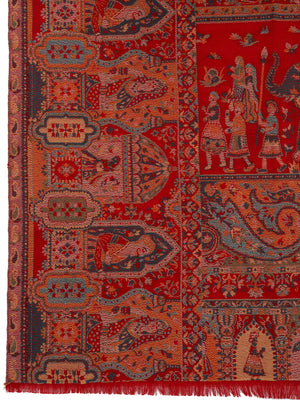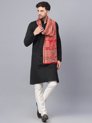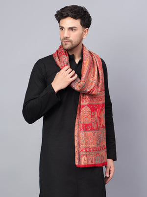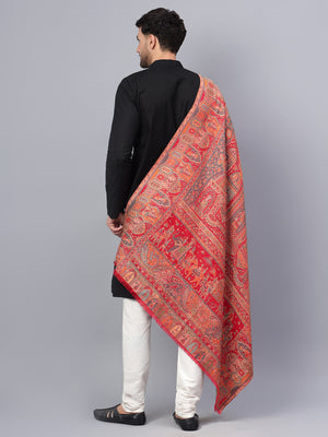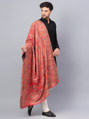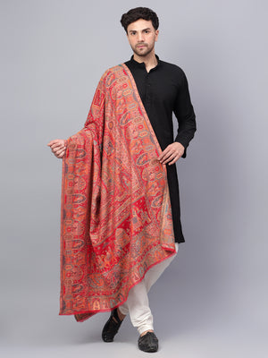 Men Fine Wool Mughal Darbar Kaani Jaal Pashmina Red Shawl