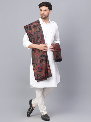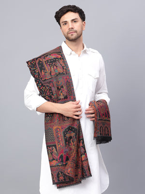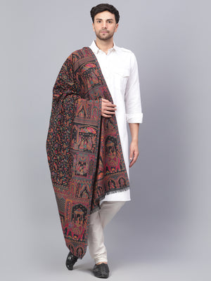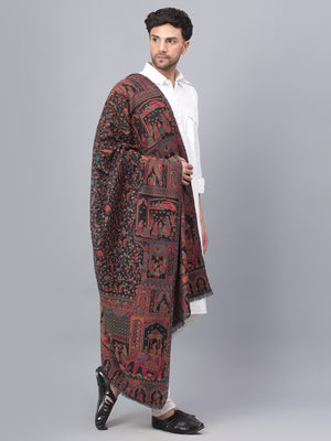 Men Fine Wool Mughal Darbar Kaani Jaal Pashmina Black Shawl