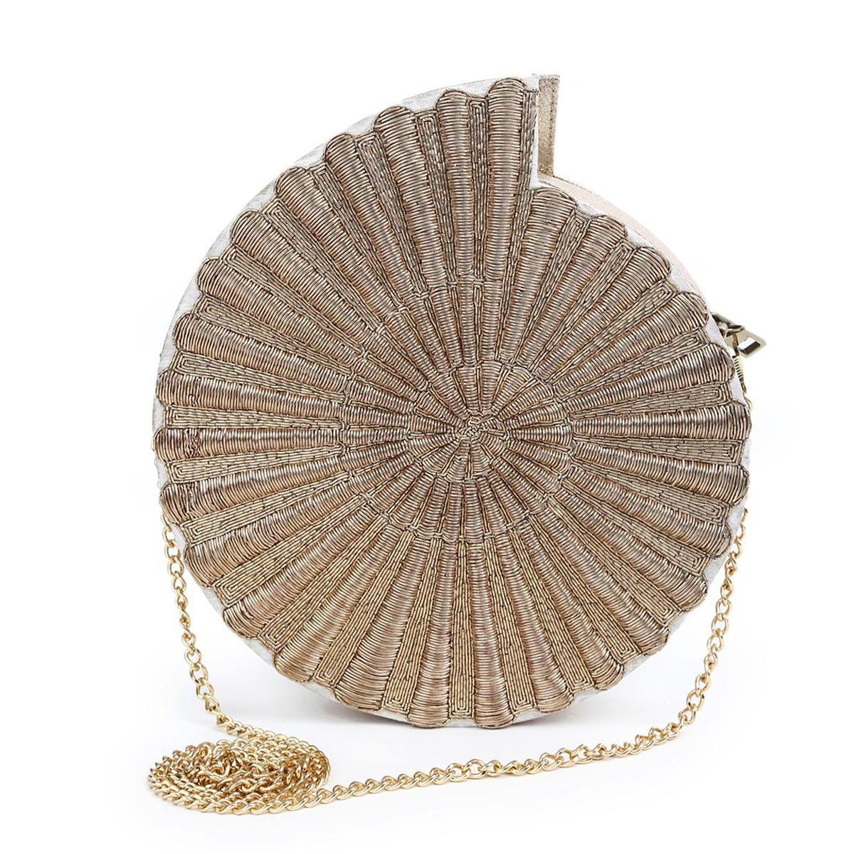 With scintillating design and hand embroidery this clutch bag comes with a detachable sling chain. Carry it with the chain or simply clutch it.