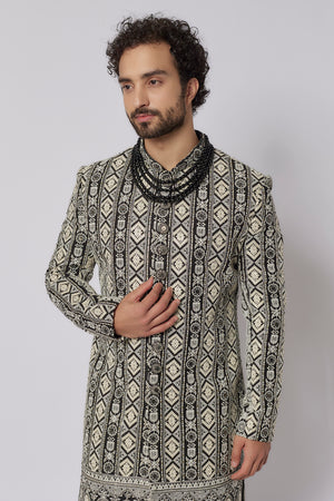 Black Lucknowi Ebroidered Sherwani Set