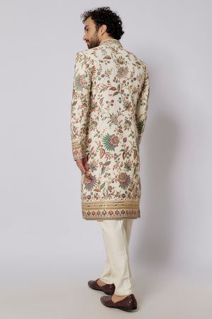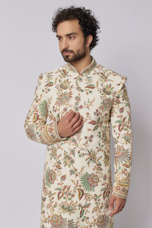 Multi-Colored Georgette Hand Embroidered Sherwani Set
