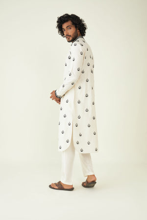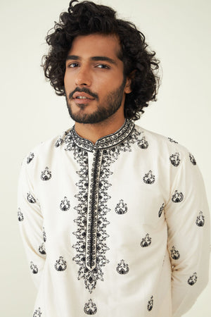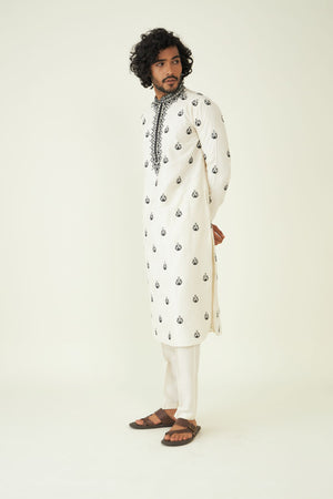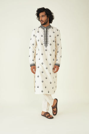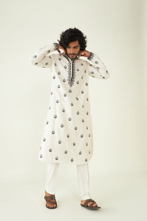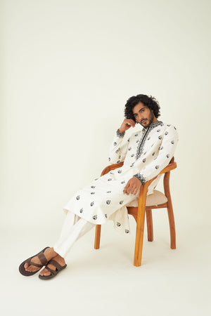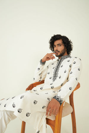 The kurta is designed with a contemporary silhouette, blending comfort and style seamlessly. It provides a relaxed fit while maintaining an air of refinement, ensuring you look and feel your best.