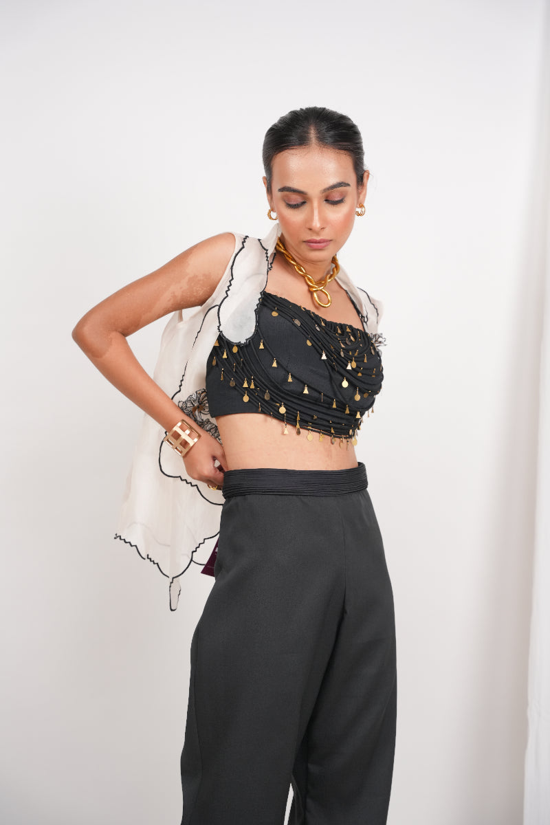 SHORT JACKET WITH HANGING BLOUSE AND PANTS
