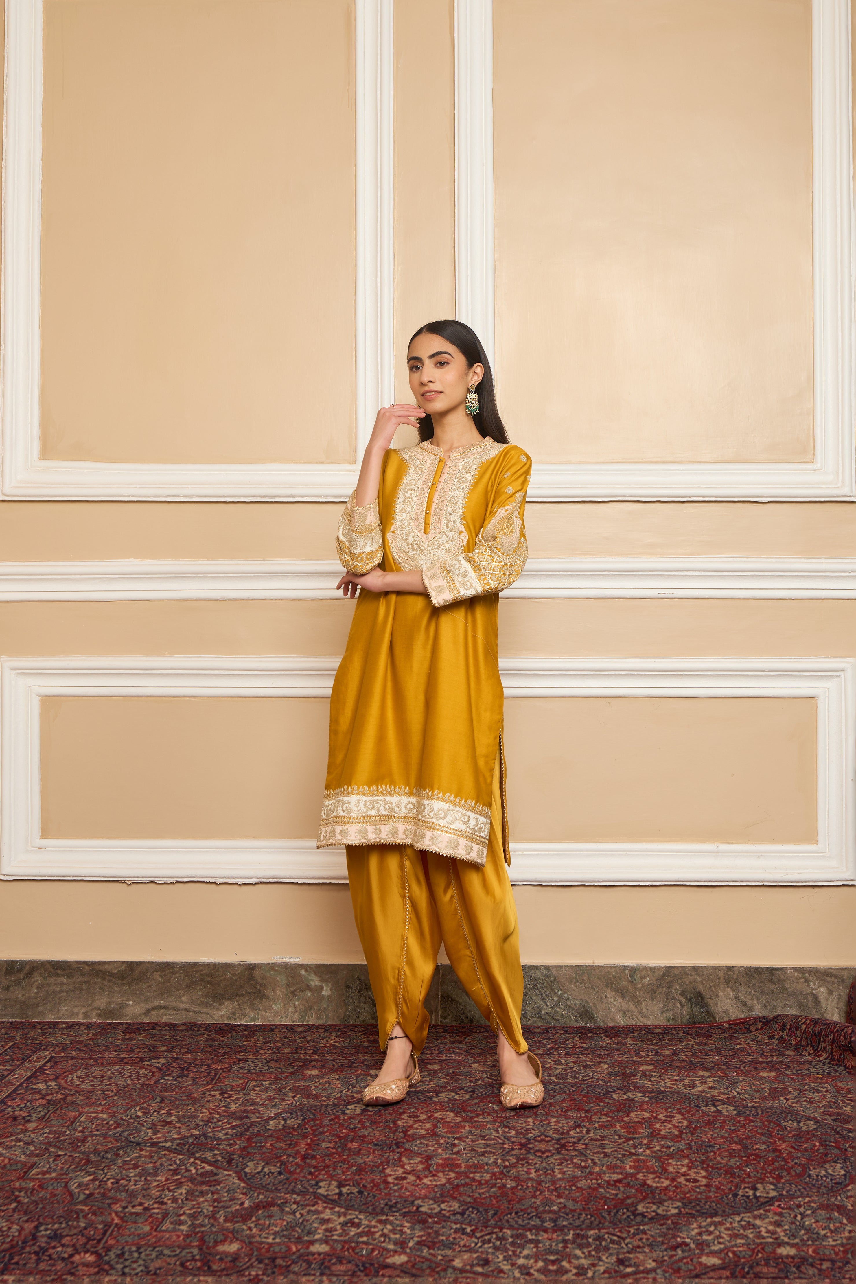 Fabric: Kurta - Silk chanderi; Bottom - Bamberg satin