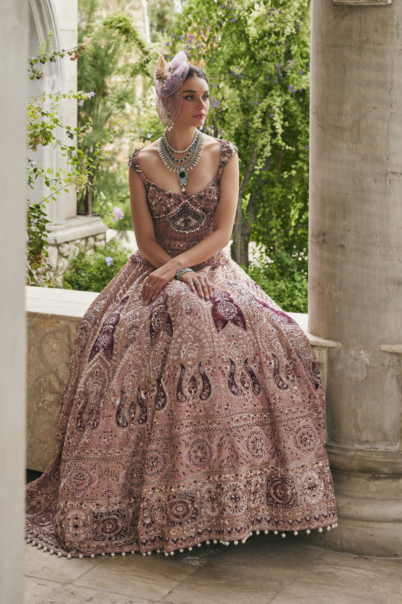Draped in elegance, this Cashmere Velvet Pink lehenga set is a vision of refined romance.