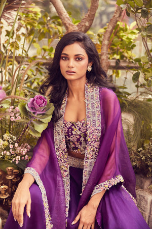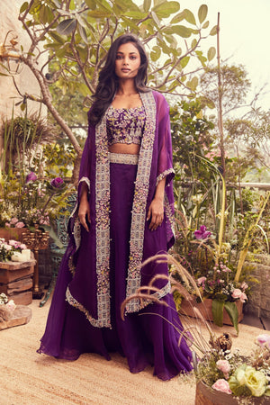 Bustier Paired With Skirt And Cape With Zardozi Work Accentuated With Threadwork And Pearls