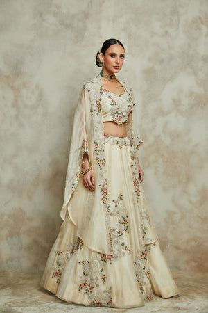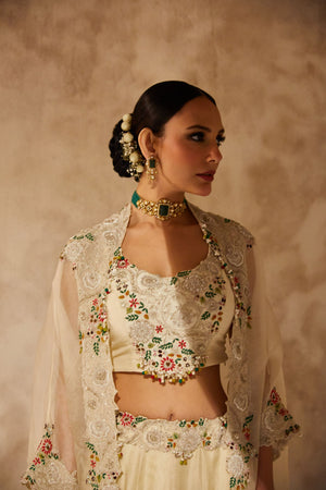 Silk Bouse With Organza Cape And Lehenga