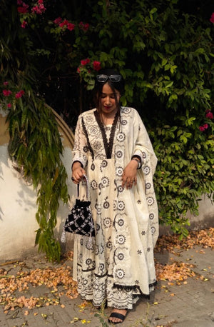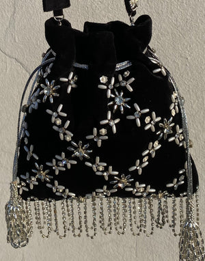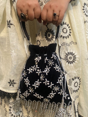 Sitara Potli is your ultimate mehfil companion, designed to effortlessly elevate every ensemble with its lightweight charm. Crafted to perfection, this potli features delicate rice beads and intricate 3D flower sequins that shimmer with every movement, exuding an aura of elegance. Adorned with twinkling rhinestone chains that add a touch of sparkle. Whether you're attending a grand event or a casual gathering, the Sitara Potli is the perfect choice to complement your style, ensuring you shine brightly in every setting.