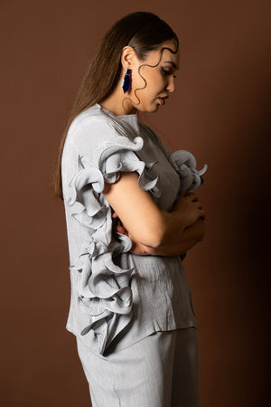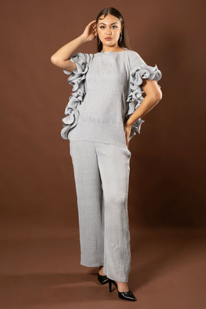 Imagine a chic grey co-ord set with a crushed fabric look, radiating effortless style and sophistication!