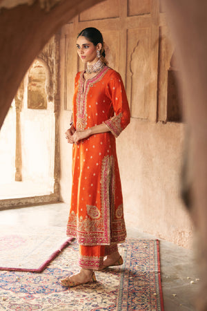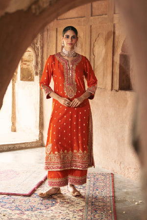SOBIA - BURNT ORANGE LONG KURTA WITH PALAZZO AND DUPATTA